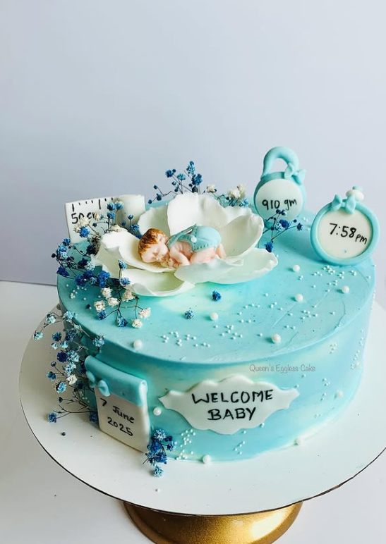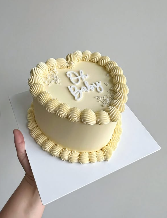 This cake is not just a treat for the eyes; it’s also delicious. It can be made with various flavors, such as vanilla, chocolate, or even red velvet. The soft frosting adds a sweet touch, and the decorative elements, like the little bow and the word ‘BABY,’ make it extra special.