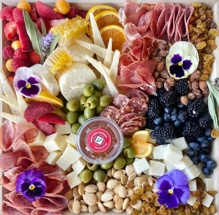 Featuring a beautiful mix of fresh fruits, artisan cheeses, cured meats, nuts, olives, and honeycomb, it’s the perfect balance of sweet and savory.