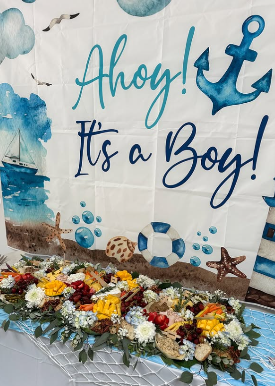 This nautical-inspired charcuterie board is the perfect centerpiece for an Ahoy, It’s a Boy! baby shower.