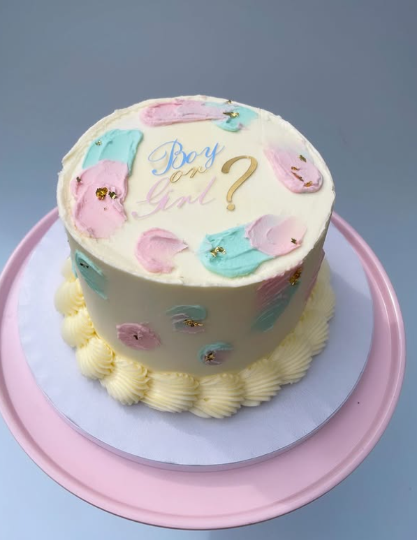 The cake cutting surprise is a fun and tasty way to reveal your baby’s gender. Imagine a beautifully decorated cake, just like the one in the image, with soft pastel colors that hint at the big news. The excitement builds as everyone gathers around, eagerly waiting for the moment when the cake is cut.
